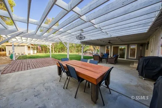 This 3br 2bth home on a .28acre lot is designed for everyday comfort & weekend entertaining. The front yard welcomes you with RV parking, green grass, an inviting front porch, & a large shade tree! Step into the backyard & picture yourself hosting barbecues, simply unwinding beneath the giant covered porch, or reading a book in a hammock! With grass, a pergola deck, mature trees, a storage shed, & a dog run area, this backyard is ready for anything! Inside, there are two living areas. The kitchen is a showpiece with two toned cabinets, granite counter tops, a pantry, & a the cutest(biased) ceiling fan above the sink. Guest bedrooms are spacious and cozy, the guest bath has been thoughtfully upgraded with shiplap & a custom tile surround. The primary suite offers hardwood flooring, dual vanity, & a tiled shower. Leased solar adds the bonus of energy efficiency & monthly savings, a Tesla Charger in the garage complements the solar, and a whole house water filtration system adds to peace of mind! Whether you are washing dishes & enjoying the view of the backyard, or cozied up by the fireplace enjoying the view of the front, this house has a spot you are sure to love!