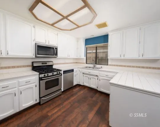 Welcome home to this inviting 3 bedroom, 2 bath property in a desirable neighborhood! Featuring paid solar and a brand new roof to be installed after close of escrow, this home offers peace of mind and long-term savings. Step inside to a spacious living room with vaulted ceilings and a cozy fireplace, perfect for gathering and relaxing. New Vinyl plank flooring has been installed in the living room, kitchen, and hallways, with tile flooring in both bathrooms. The large kitchen provides abundant counter space, making meal prep and entertaining a breeze. Three comfortable bedrooms with carpet offer plenty of room for rest and retreat. With its combination of modern updates, functional layout, and prime location, this home is the perfect blend of comfort and value!